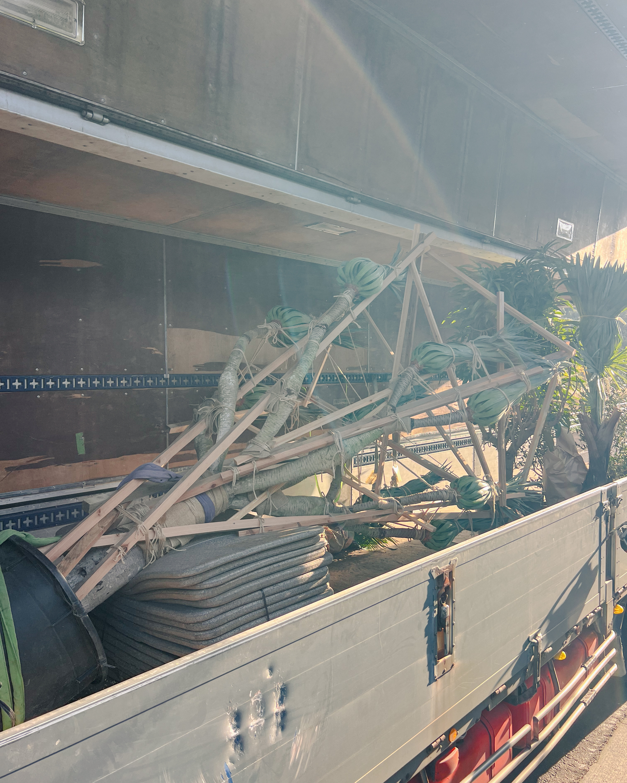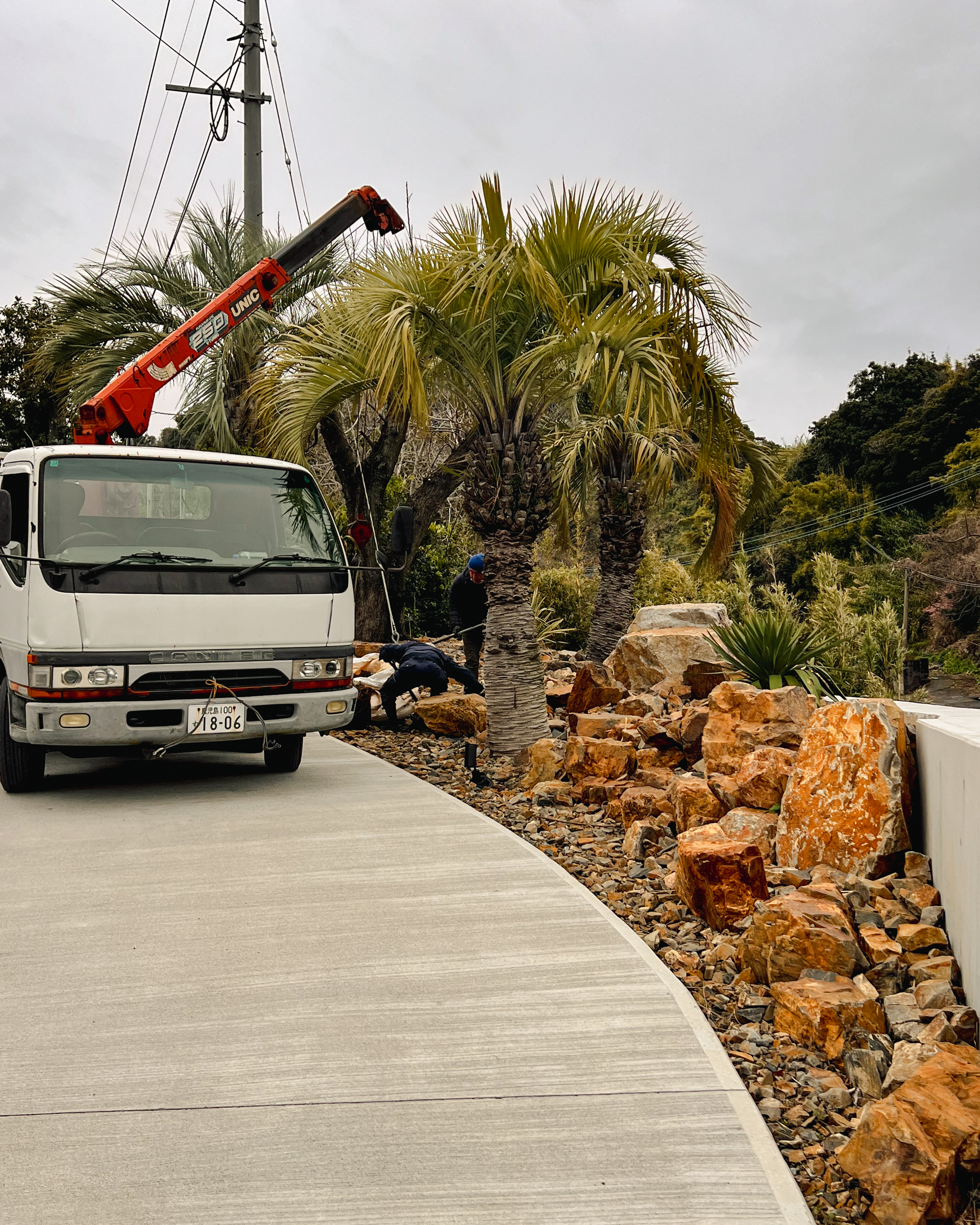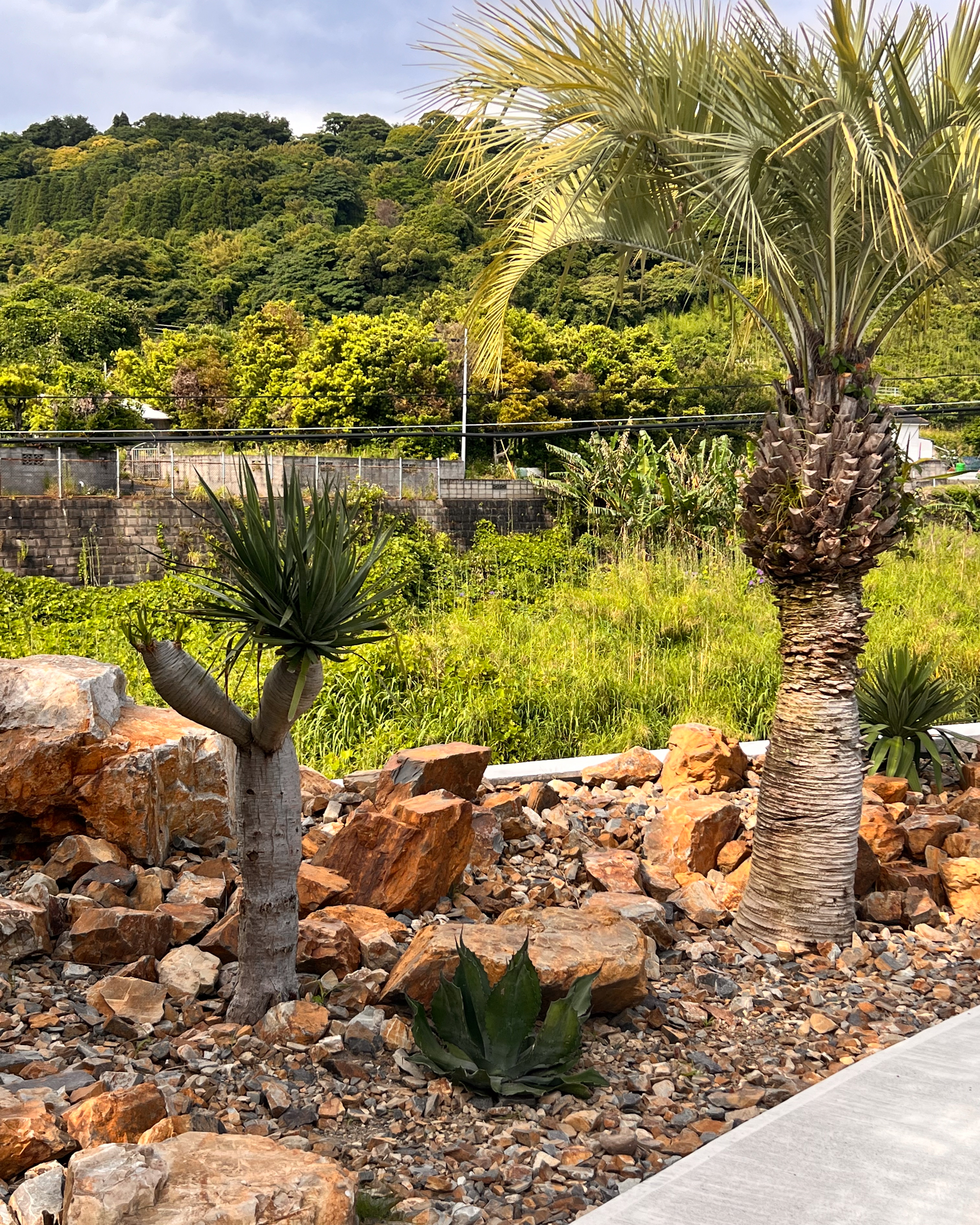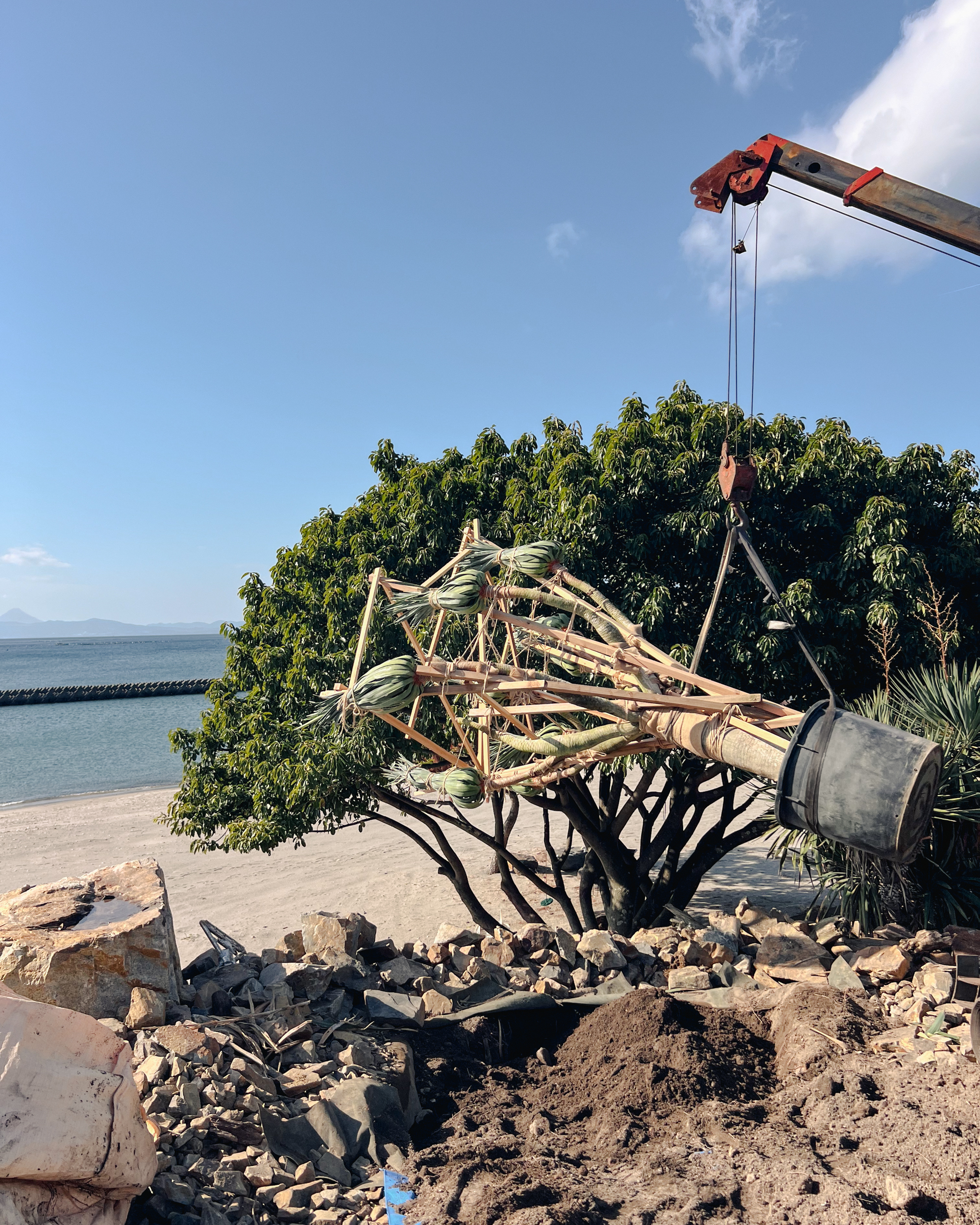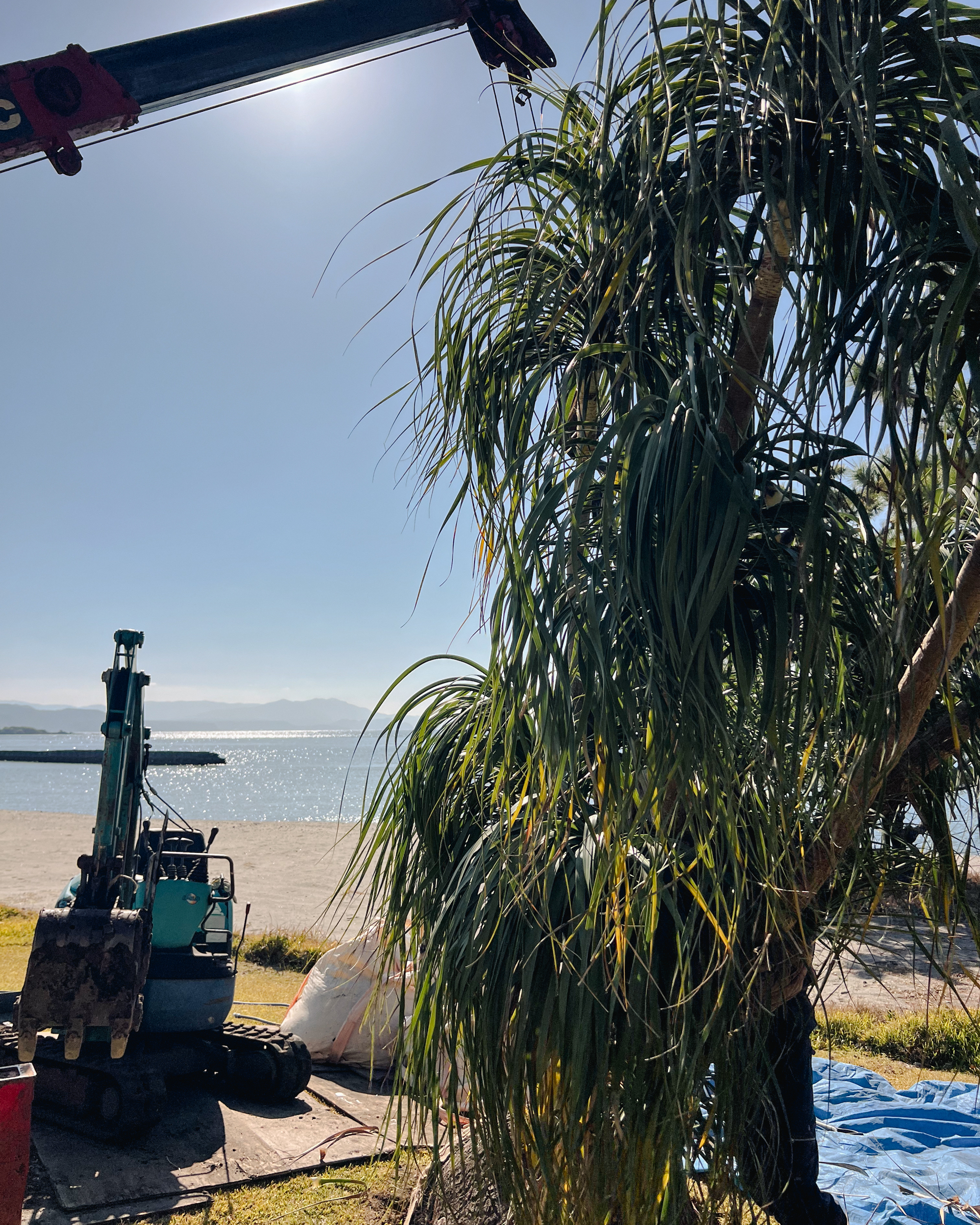 At the end of last year, we planted trees well suited to the coastal environment of subtropical Kagoshima, including Nolina, Dracaena draco, Norfolk Island pine, and mango, all of which had been nurtured at our farm for many years.