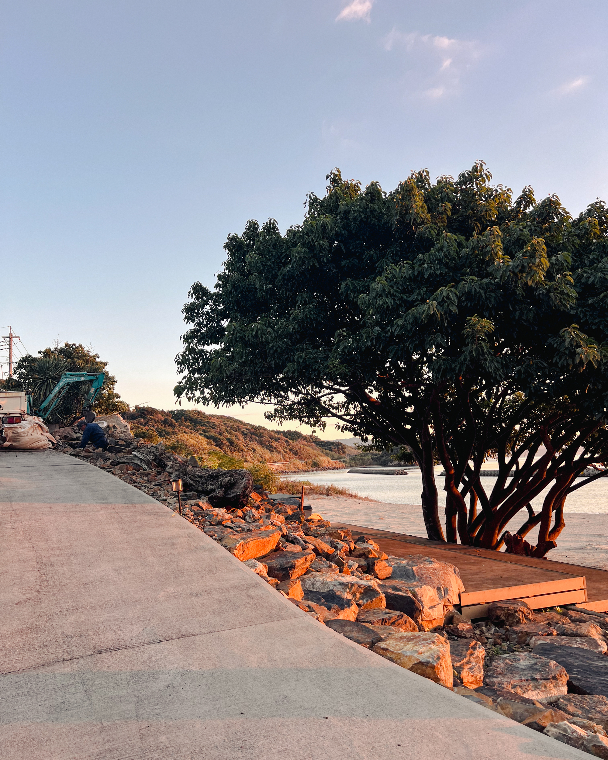 A planting project for a private residence on the coast, looking across the water toward Mount Kaimon.