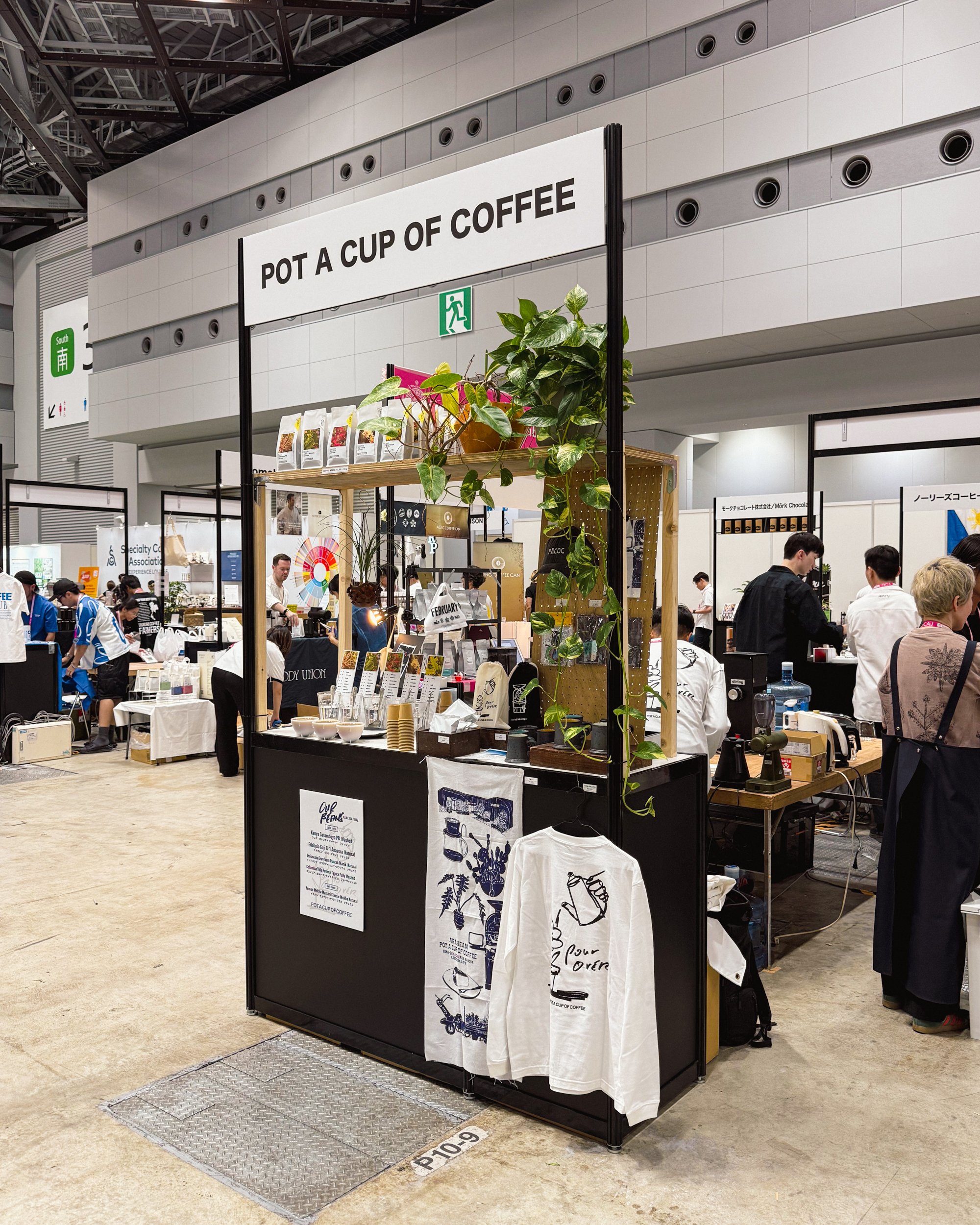 Araheamに併設しているPOT A CUP OF COFFEEが昨年初めて参加したSCAJ。たくさんの方に立ち寄っていただき私たちが鹿屋で作るコーヒー豆やグッズを見ていただいた貴重な機会になりました。小さなブースでしたが、鹿屋のお店の空気感そのまま伝えたい思い、配置図やブースの図面を頼りに私たちのお店の要素を詰め込んだブースを考えました。ささやかでしたが植物も配置し、鹿屋のお店のようにPOTとAraheamの要素が詰まったブースとなりました。Tシャツや巾着などもこの日のために制作して、納期と睨めっこしながら、スリリングに楽しみながら準備をしたのも印象に残っています。私たちのブースにお立ち寄りいただきありがとうございました。POTのブログにも当日の写真などをアップしました。よろしければご覧ください。